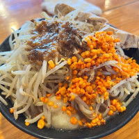 “ 所謂「二郎系」。たっぷりモヤシと太麺の組み合わせに、コッテリの醤油味のスープ。 大盛りでも750円とリーズナブルで、成人男性なら普通に食べきれる量なので、二郎系だからといって身構えなくても大丈夫。ロットなどの闇ルールもなく、気軽に食べられる。 店内の券売機で食券を買ってから座る。昼時は結構混む。なお、デフォルトではニンニクが入っておらず、テーブルの上にも置いていない。実はカウンターの大画面テレビ側に、ニンニクや山椒、生姜、アオサなど、ご自由にトッピング下さいの調味料があるのだが、わざとかって位に案内していない。まあニンニクに限らず野菜増し、アブラ増しにも口頭で対応してくれるので、食券を渡す際にハッキリ伝えよう。 トイレは段差があるが男女共用の洋式が一つ。 ”